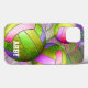Girly grungy volleyball iPhone 6 Coque avec des volleyballs multicolores panelés en rose chaud et violet, jaune et chaux et nom de fille personnalisable par katz_d_zynes