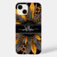 Calligraphie Rustique Tournesol Script Téléphonie Monogrammé. Tournesol unique et tendance avec pétales en motif gris, jaune, orange et léopard, avec un modèle monogramme personnalisé et élégant nom de script de calligraphie modèle. Cette jolie couverture téléphonique inspirée de la ferme ferait un cadeau réfléchi pour maman, fille, grand-mère, etc.
