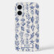 Coques marines nautiques Blue Sketch Monogramme iPhone 16 Coque
