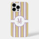 Coquette Aesthetic Personalized Preppy Monogram Phone Case. Embrace the coquette aesthetic with this chic personalized striped phone case. Easily add your own initial to create a unique monogrammed accessory that's perfectly you. Featuring a trendy lilac and mustard yellow design, this preppy and elegant case is a stylish way to protect your phone. **Please note: Simply replace the sample letter with your initial. The script 'coquette' text is part of the design and remains as is.** A wonderful personalized gift for a birthday, bridesmaid, or any special occasion.