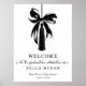 Coquette graduation party welcome poster with a beautifully painted black bow and tassel.