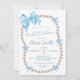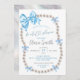 Coquette Blue Bow Pearl Bridal Shower Invitation