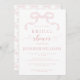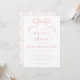 Élégamment raffinée, cette invitation à la nuptiale de Coquette bohème présente un délicat ruban d'arc rose. L'invitation est ornée d'un texte de calligraphie simple, d'une couleur blush sophistiquée, créant un design intemporel et gracieux. Parfait pour donner le ton d'une fête mémorable.