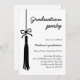 Celebrate your graduate's milestone with this classic black-and-white graduation party invitation! Designed with sophistication in mind, it features a hand-drawn tassel and a chic coquette-style bow for a touch of elegance. The handwritten calligraphy-style font adds a personal and stylish flair, making it perfect for formal or casual celebrations.