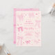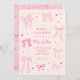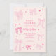 Cute and coquette baby shower invitation card featuring illustration of pink bows and hearts.