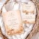 A warm and cozy fall baby shower design featuring a hand-painted watercolor pumpkin surrounded by soft peach florals, golden leaves, and delicate autumn accents. The earthy orange palette and elegant arch layout create a refined harvest aesthetic that feels timeless and inviting. Perfect for an autumn celebration, a neutral fall theme, or a charming “Little Pumpkin” baby shower with rustic floral details.