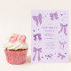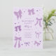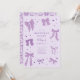 Carte d'invitation à la fête d'anniversaire mignonne et coquette illustrant des arcs et des coeurs violets.