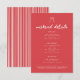 Coquette Bow Script Bachelorette Weekend Details Enclosure Card. Designed with script lettering, and a red and white striped pattern on the back, personalize this modern and minimalistic enclosure card with all of your bachelorette wedding weekend details, including your itinerary, and the cost of the weekend for guests below.