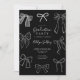 Vintage and coquette graduation party invitation card featuring hand drawn illustration of bows and hearts.