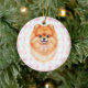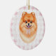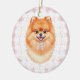 Coquette Brown Pomeranian Dog Pink Gingham Bows Ceramic Ornament