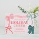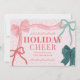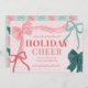 Coquette-Core Red & Green Bows Pink Christmas Holiday Card