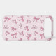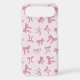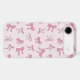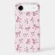 Pink bows with black outlines on a light pink background make up this cute phone case. The design features different types of bows in a trendy coquette style pattern.