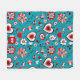 This blanket design features a charming and vibrant pattern with a teal background adorned with an array of floral motifs and heart accents in red, white, and pink. The bold flowers and whimsical hearts create a playful, romantic aesthetic. A monogram section in the bottom corner is customizable with your chosen initials, adding a personal touch to this cozy and stylish piece. Perfect as a gift or a statement decor item!
