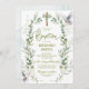 Coquette Greenery Baptism Invitation, Greenery Floral Baptism Initation