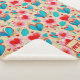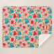 This blanket design is bright and cheerful, featuring a whimsical floral and heart motif in vibrant red, blue, and pink tones against a soft cream background. The repeating pattern is playful and eye-catching, blending stylized flowers with heart shapes to create a romantic and uplifting vibe. A customizable monogram at the bottom allows personalization with initials, making it an excellent gift or a special keepsake for yourself.
