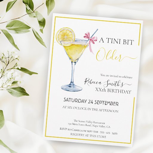 Coquette lemon cocktail A tini bit Older birthday Invitation
