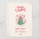 A soft and elegant Christmas design in pastel pink and mint green, featuring a dainty ribbon bow tied around a whimsical Christmas tree with “Merry & Bright” written in gold script. Perfect for lovers of the coquette aesthetic, this design blends holiday cheer with feminine charm — ideal for a cozy, stylish Christmas celebration.