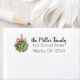 Ces étiquettes de adresse de Noël arborent un portrait aquarelle d'une boule de faux orteils accrochée par un arc à ruban dénudé rouge et blanc.