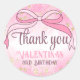 Coquette Pink Bow Gold Glitter Script Thank You Classic Round Sticker