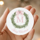 Coquette Pink Bow Monogram Wreath Christmas Classic Round Sticker