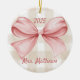 Coquette Pink Bow Teacher Custom Christmas Ceramic Ornament