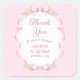 Coquette Pink Gingham Bow First Birthday Thank You Square Sticker