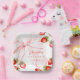 Celebrate your little one's arrival with this charming coquette bow theme "Berry sweet" plates! Featuring a delightful strawberry theme, elegant red script, and soft watercolor accents, this paper plate is perfect for a spring or summer baby shower celebration.