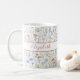 Beautiful boho-inspired mug featuring cheerful watercolor wildflowers in various shades of blush, pink, lavender, yellow, blue and green. Personalise in pink with your name or the name of a loved one for the perfect gift!