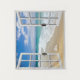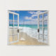 Vue d'océan tropicale de plage, fausse scène de fenêtre, pour un mur sans fenêtres de bureau. Amusement, tenture pittoresque réaliste d'illusion optique pour un bureau ou mur d'étude.