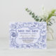 De magnifiques cartes vintage de save the date bleu pour les mariages de plage tropicaux. Divers assortiments de coquillages et texte antique à l'intérieur d'un cadre de corde nautique, le tout réalisé sur une texture de fond de papier ancien. N'hésitez pas à me contacter si vous avez besoin d'aide pour la personnalisation ou si vous avez une demande de couleur personnalisée.