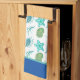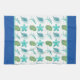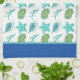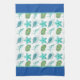 Montrée sur une serviette blanche, cette serviette de cuisine a des images de coquillages dans les tons bleu et vert. Bordure bleue profonde avec une fine bordure d'eau sur les bords inférieurs. Customisez cet objet ou achetez comme indiqué.