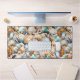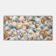 Un beau collage avec des coquilles de coquilles Saint-Jacques générées par l'IA, des palourdes et des huîtres, dont certaines sont recouvertes de jolies perles, dans les tons bleu, marron, bronze, ivoire et beige sertis dans un collage contre une plaque murale de votre choix. Ce design d'inspiration marine est idéal pour une maison de plage, un bureau ou une maison à thème nautique, ou comme cadeau pour toute personne qui a acquis un penthouse, une villa ou un gîte de bord de mer et qui aime les escapades tropicales sur les îles.
