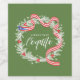 Coquito label with a Christmas wreath and Puerto Rican flag ribbon.