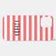 Corail et blanc rayé monogramme iPhone 12 coque. Cute couverture de téléphone à thème nautique avec rayures. Couleur arrière - plan personnalisable. Faites votre propre texte. nom ou monogramme. Grande idée cadeau personnalisé pour les hommes, les femmes et les enfants.