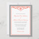 Un faire-part de mariage formel comportant un remous élégant de flourish. Montré dans le gris et le corail.