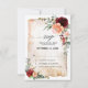 Carte RSVP Bourgogne Pêche Orange Brûlée avec un élégant bouquet de fleurs de rose de couleur bourgogne, rouge, Marsala, marron, pêche, rose saumon, corail et rose blush et feuilles d'eucalyptus vert sauge. Et texture de parchemin aquarelle grunge vintage. Veuillez me contacter pour toute aide de personnalisation ou si vous avez besoin d'un autre produit avec ce design.