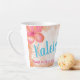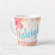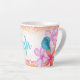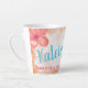 Tasse à café personnalisée aux fleurs de plumeria rose et orange tropicale, et lis calla bleu malibu. Ajoutez facilement votre citation unique / disant, message amusant pour votre touche personnelle. Idéal aussi pour une tasse à café personnalisée pour la fête des mères. Nom ou monogramme est beau pour les thèmes côtiers, les cadeaux de mariage de plage, les thèmes coralliens et turquoise.