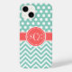 Coral and Aqua Polka Dot Chevron Monogram Case-Mate iPhone Case