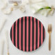 Coral and black candy stripes paper plate