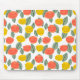 This mouse pad has a Scandinavian design of flower and leaves scattered about in coral, gold, and sage green.