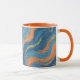Swirling coral and indigo waves meet shimmering gold accents in this textured abstract design—evoking movement, depth, and radiant contrast