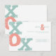 This coral peach pink and mint green or teal blue or sea foam modern wedding response card features the letters XOX sybolizing hungs and kisses for a whimsical, romantic and chic stylish announcement. The bold look gives this spring wedding invitation a fun and artistic feel and can also be used for bridal shower or wedding shower invites and vow renewal and anniversary party invites.