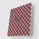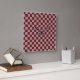 A symmetrical, alternating checkerboard pattern featuring dark blue and pink squares, conveying a playful and vibrant visual effect.