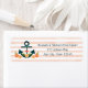 Coral and navy blue nautical wedding, bridal shower, couples shower, anniversary or engagement party return address labels with an anchor with a coral heart hanging off its rope and coral flowers and yellow roses with green leaves make up the floral elements of this lovely seaside themed design. A coral and white watercolor look striped background complete this by the beach look address sticker. Artwork © Chrissy H. Studios, LLC. All rights reserved.