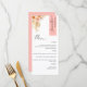 Why spend in place cards and menu cards when you can have an elegant All-in-one elegant Menu personalized with each guest name! Contemporary, simple and elegant design with exquisite watercolor floral detail in a beautiful blend of peach, orange, blush, dusty coral, cream and champagne hues. Modern hand written calligraphy elements. Stripe on the top right corner in coral pink tone with guest name in black. Back in same coral pink as stripe. Ability to change both stripe colour or back by selecting "customize further". NOTE: please an individual order for each menu by adding guest name into menu, add menu into shopping cart; then come back to menu, add second guest name, add menu to shopping cart...continue with this process with all guest names on your list. Zazzle does not receive guest names lists to print. For short first guest names add with your keyboard spacebar a few empty "spaces" before name to centre. Design available in a variety of colour choices. Part of our "Peach Floral Delight and Coral" collection with a variety of coordinating products available. Visit the entire collection at: https://www.zazzle.com/collections/peach_floral_delight_with_coral-119881887592815880