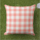 Coral and White Gingham Plaid Pattern Outdoor Pillow