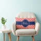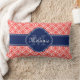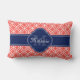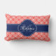 Coral and Wht Moroccan Pattern Navy Monogram Lumbar Pillow