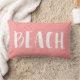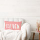 This coral and white beach lumbar throw pillow makes a great accent to your home's decor. This coastal or beach house throw pillow features the word "Beach" on the front and a coral pink and white nautical stripe on the back.