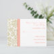 Coral Beige Damask RSVP Wedding Card