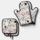 Coral Black White Circles, Dots Oven Mitt & Pot Holder Set